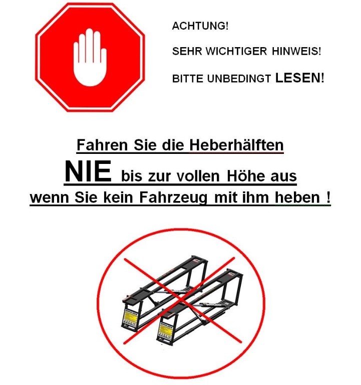 gleichzeitig mit allen 4 Rädern gerade vom Boden heben !!
